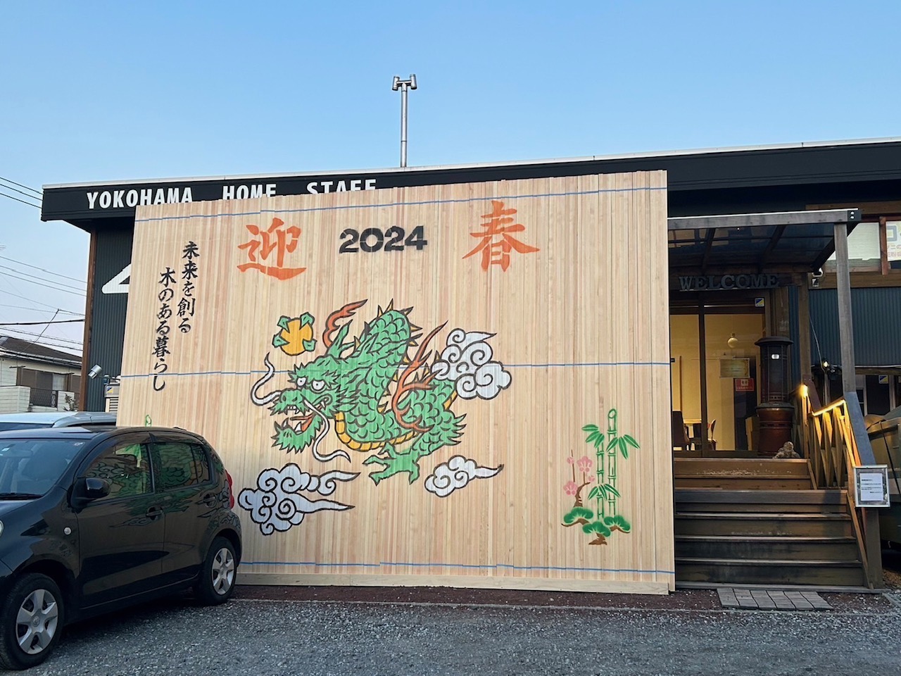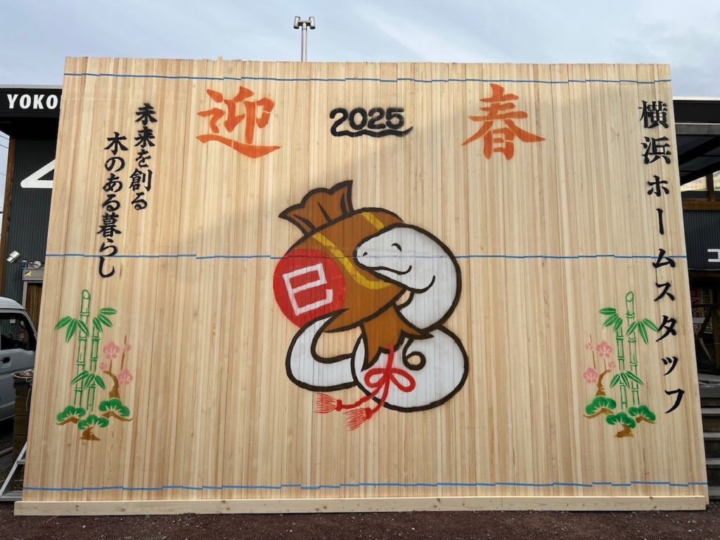 これまでは、材木屋さんで干支がペイントされた材木を買ってきて、それを社屋にどーんと飾るのが恒例でした。